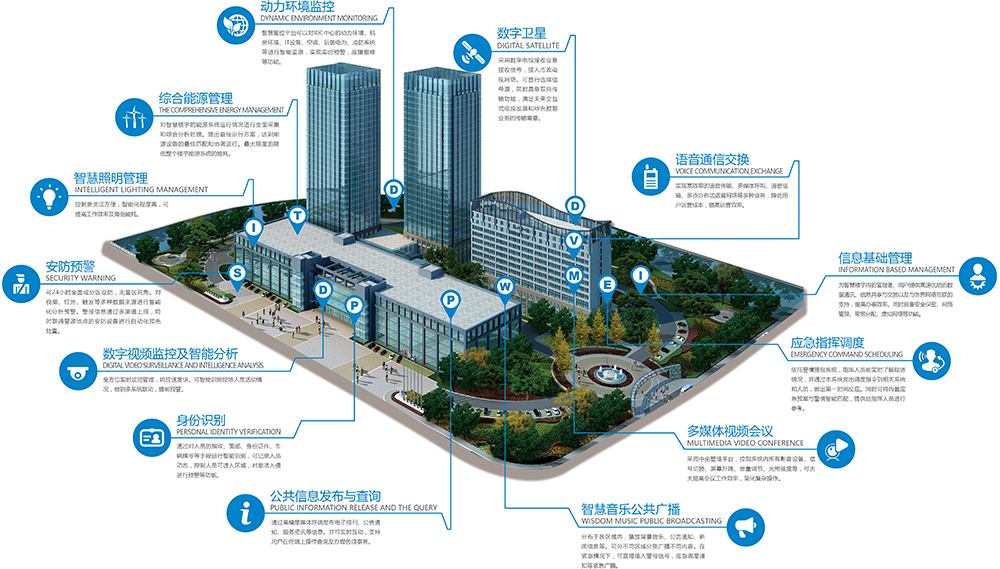 基誉智慧楼宇是采用物联网技术、大数据、AI技术,使建筑物机电或建筑群内的设备有条不紊、综合协调、科学地运行,有效地保证建筑物内有舒适的工作环境、实现节能;帮助楼宇业主和物业经理实现楼宇运营管理流程标准化,从而提高楼宇运营效率,降低运营成本,有效提高客户满意度,并在全生命周期中提高楼宇价值,改善品牌形象。照明、物业、安防、消防、门禁、设备管理、业务管理、办公等系统融为一体,对楼宇进行集中监管、能源管理、运维管理等,实现各系统联动控制、协同处置。